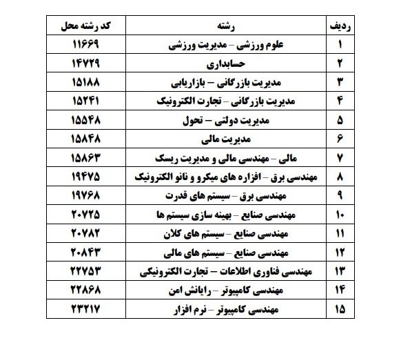 کد رشته محلهای موسسه آموزش عالی مهرآستان جهت انتخاب رشته به شرح زیر میباشد: